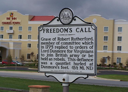 Patriot Robert Rutherford died in 1803 (or 1805) at his handsome estate, “Flowing Springs”, near Charlestown, West Virginia. He left his estate to his wife, Mary. They are buried at “Flowing Springs”.
