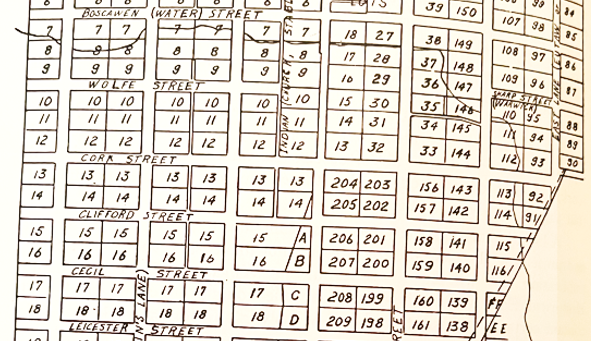 During the Revolutionary War, some Hessian and British prisoners were kept in Charlottesville, Virginia. Colonel James Wood moved groups of these prisoners northward. Some were housed in the Fort Loudoun barracks, while others were held at barracks north of town.3 In 1777, Captain Andreas Wiederhold, a Hessian soldier and prisoner captured during the Battle of Trenton, drew a map of Winchester, which provides invaluable insight to historians today.