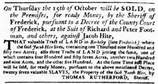 Robert’s father, Thomas “Hugh” Rutherford was an early and important resident of Frederick County.