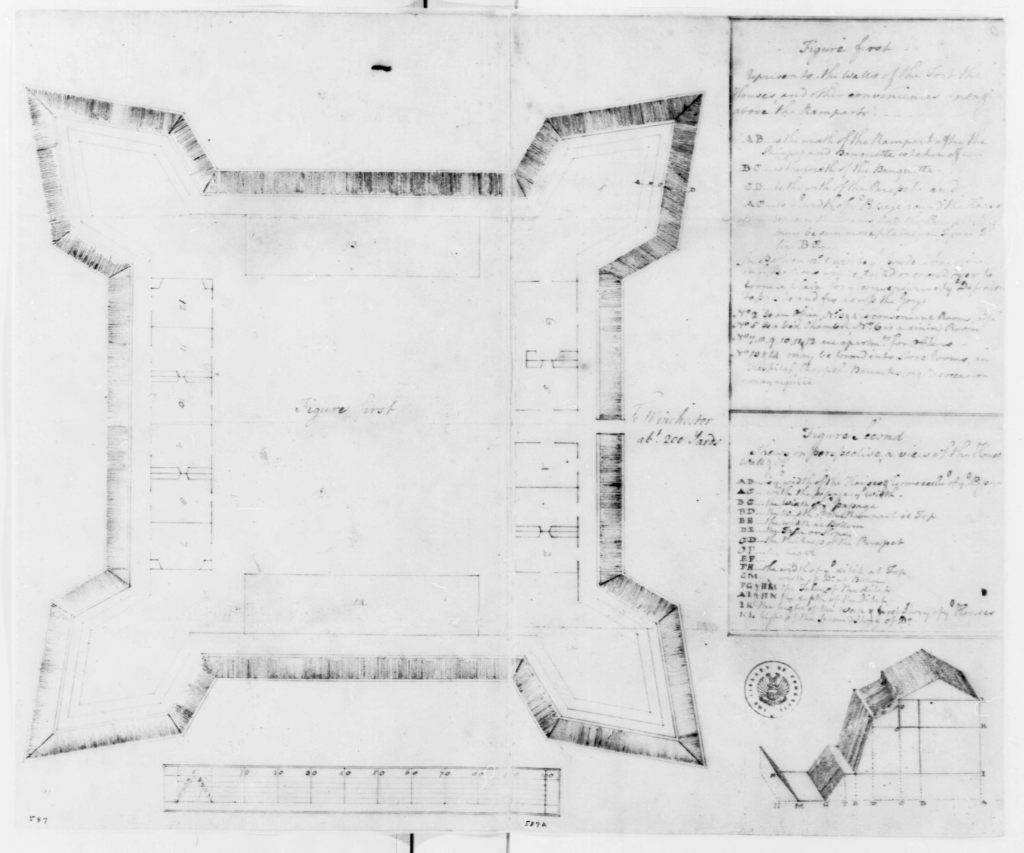 - (1756) George Washington Papers, Series 4, General Correspondence: George Washington, Diagrams of Frontier Forts. [Manuscript/Mixed Material] Retrieved from the Library of Congress, https://www.loc.gov/item/mgw442497/. ↩︎