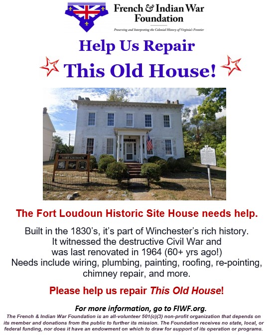 Please consider supporting restoration and repairs to the house at the Fort Loudoun Historical Site through your tax-deductible donation.