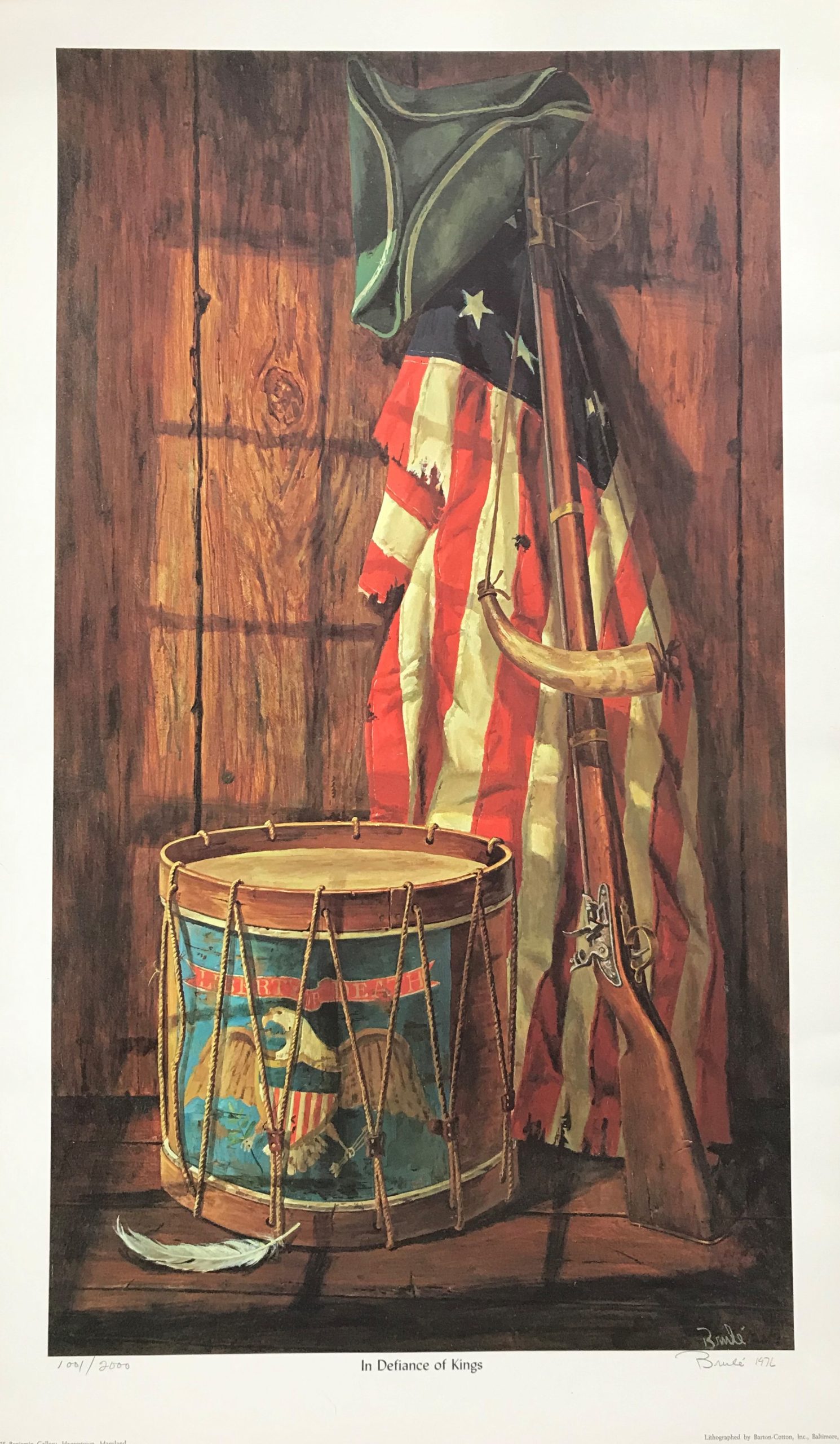 Limited edition of 2000 prints, signed by artist in 1976. Original oil painting hangs in the White House in Washington, D.C. and was presented for the American Bicentennial. (20″x34″)