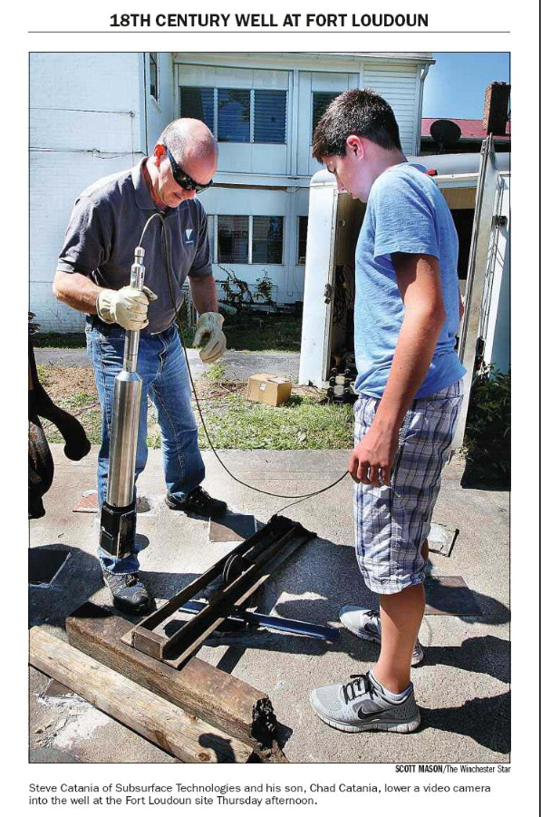 In July of 2013, a video was taken of the interior of George Washington’s Well at the site of Fort Loudoun. For the first time since 1758, the interior of the well has become visible to researchers, archaeologists and students of history. Since the recorded depth of the well is 103 feet, this video taken at 75 feet suggests that there is 28 feet of sediment that could contain artifacts dating from 1930 (when the concrete cap was poured) all the way back to 1757 (when the well was originally dug.